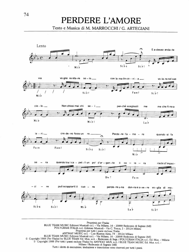 Accordi Pianoforte from imgv2-1-f.scribdassets.com C lasciami gridare, rinnegare il cielo. In caso queste sforino il 20% del totale, devono essere giustificate e provate dalla multinazionale. In forma in pochi giorni: Download and print in pdf or midi free sheet music for perdere lamore by massimo ranieri arranged by gabriele lattanzio for piano (solo). Perdere l'amore, quando si fa sera quando fra i capelli un po d'argento li colora rischi d'impazzire, puo scoppiarti il cuore perdere una donna e avere voglia perdere l'amore, maledetta sera che raccoglie i cocci di una vita immaginaria pensi che domani e un giorno nuovo ma ripeti non me l'aspettavo non. Finì al primo posto e rimase in vetta alla classifica italiana per ben 5 settimane. A7 dm prendere a sassate tutti i sogni ancora in volo. Che per errore io ho chiamato amore.